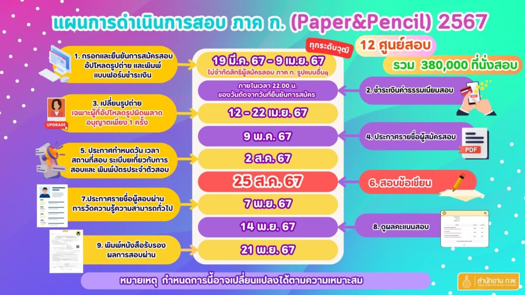 สำนักงาน ก.พ. เปิดรับสมัครสอบ ก.พ. ประจำปี 2567 (Paper & Pencil) รับสมัครทางอินเทอร็เน็ต ตั้งแต่วันที่ 19 มีนาคม – 9 เมษายน 2567 ประกาศสำนักงาน ก.พ. เรื่อง รับสมัครสอบเพื่อวัดความรู้ความสามารถทั่วไป ประจำปี 2567